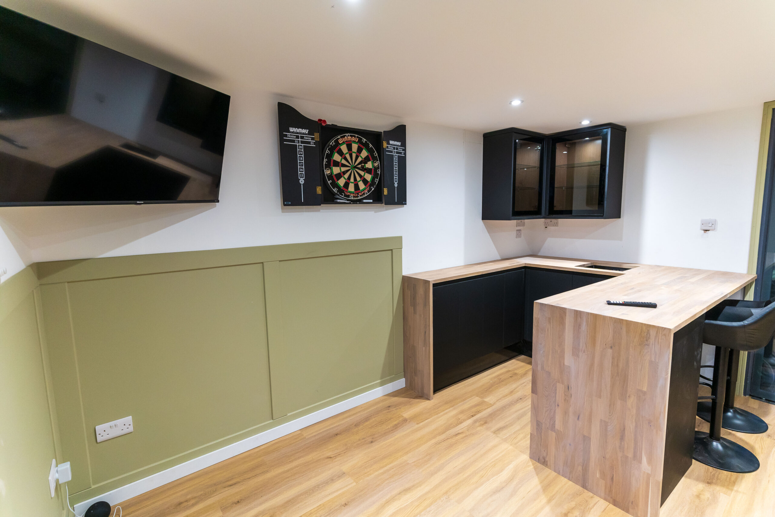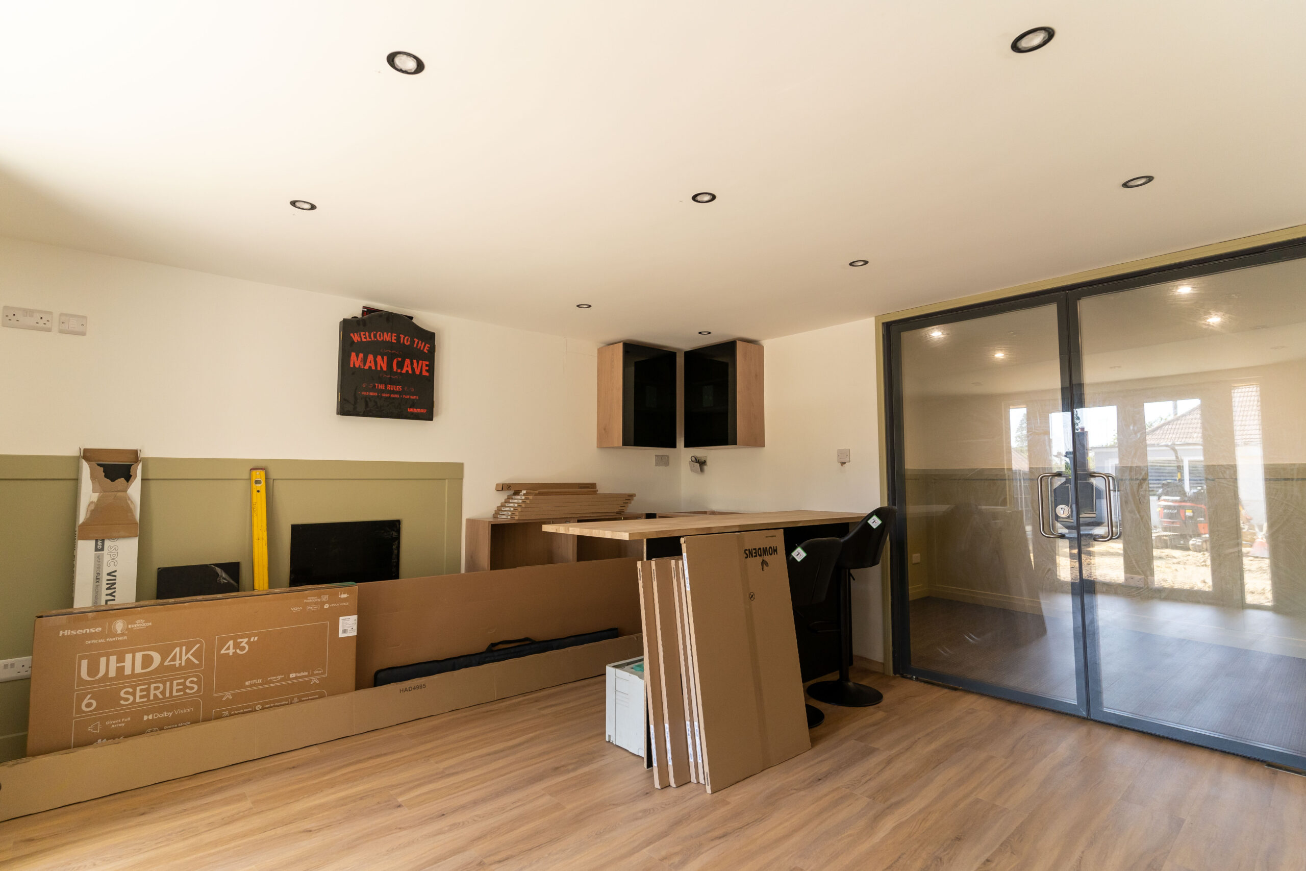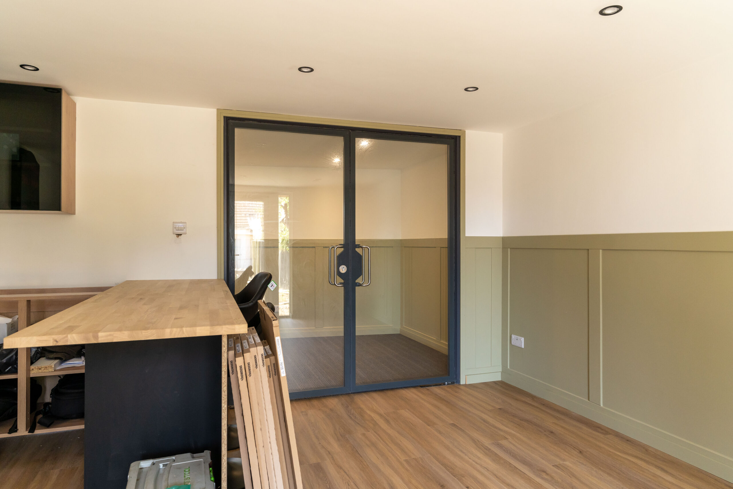 This Luxury Garden Room in Burgess Hill showcases a beautifully designed, versatile space that combines functionality with modern elegance. Built to serve both as a professional, soundproof office and a stylish bar area, the room reflects our attention to detail and craftsmanship at every stage.